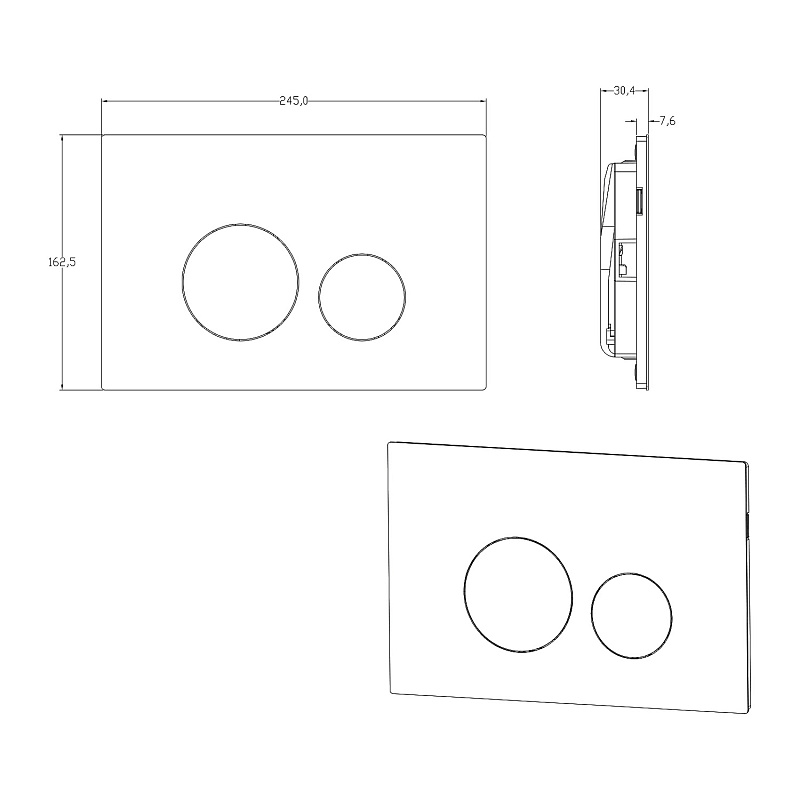 —Кнопка смыва AZARIO NEW-TS механическая, двойной смыв, круглые кнопки, нержавеющая сталь 304, черный (AZ-SS-002-B)
