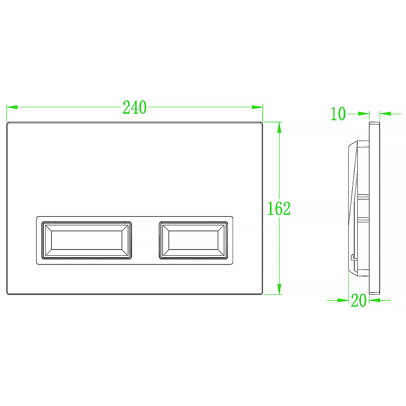 Кнопка смыва Azario. Пластик. Двойная, механическая. Оснащена инфракрасными датчиками для бесконтактного смыва. Подходит к инсталляции Azario коллекции NEW AZ-510A. Размер изделия (Ш/Г/В): 240x30x162 мм. Цвет – черный матовый. Работают также от батареек АА 4 шт. Материал изделия - пластик.