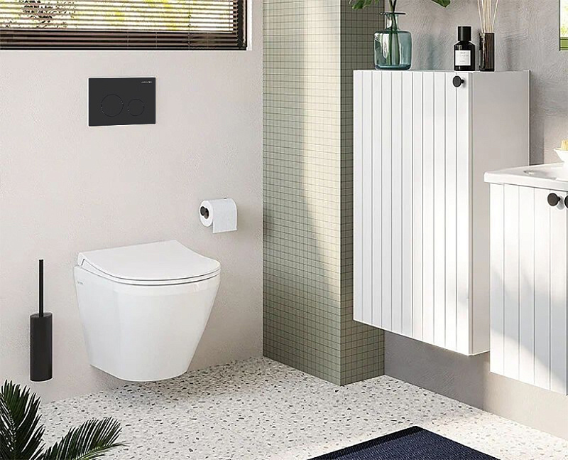•    Черный матовый цвет: Глубокий, насыщенный черный матовый оттенок клавиши AZARIO придаст вашей ванной комнате изысканный и лаконичный вид. Он легко впишется в любой интерьер, от классического до ультрасовременного.