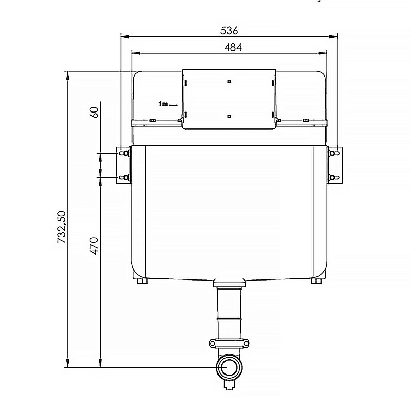 Бачок скрытого монтажа AZARIO 536х185х732 для приставного унитаза (AZ-8030-1001)