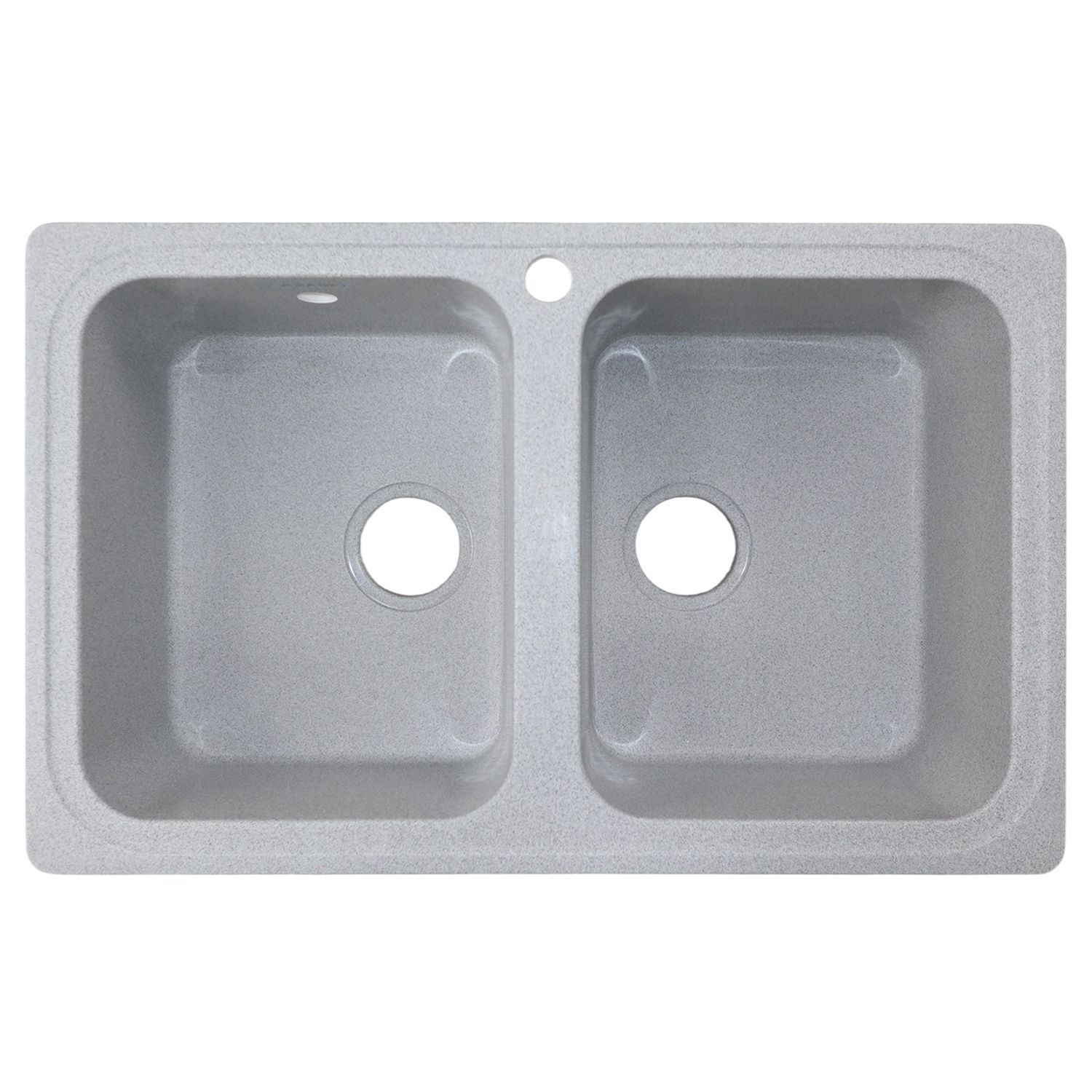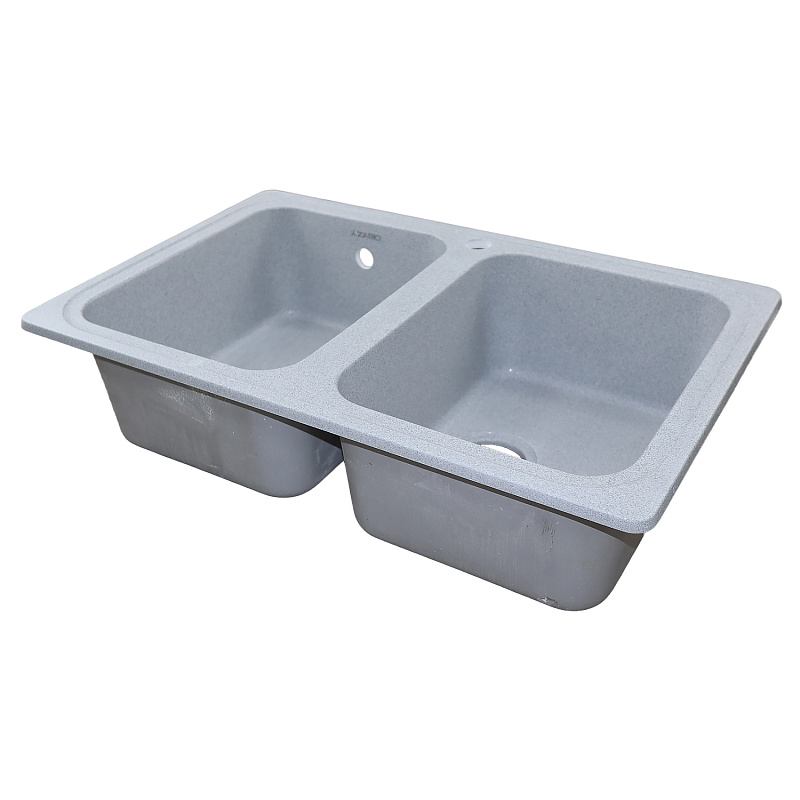 —Кухонная мойка AZARIO Alba 780x490x190 двойная, искусственный мрамор, сифон в комплекте, цвет серый (CS00105219)