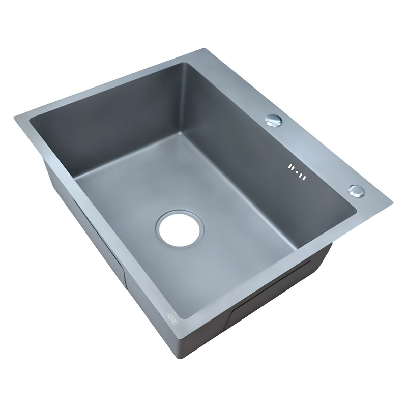 —Кухонная мойка AZARIO NICOLE 600х500х220 нержавеющая сталь, в комплекте сифон, диспенсер, коландер, серая соты (AZG6050H)