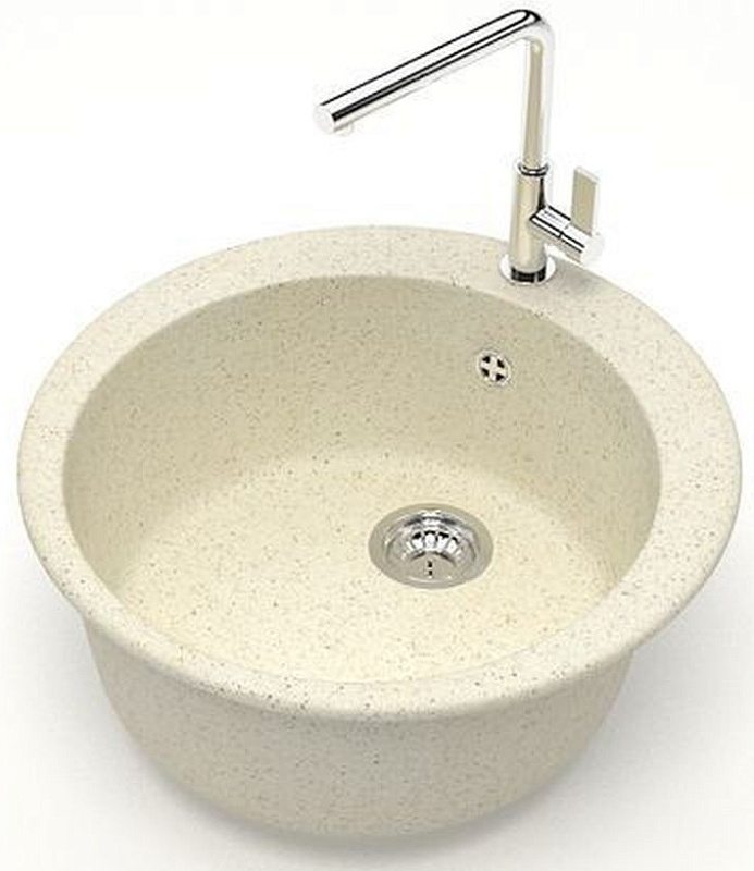 Кухонная мойка изготовлена из современных экологически чистых материалов, природного молотого кварца, мрамора или гранита с добавлением специальных пигментов и красителей.