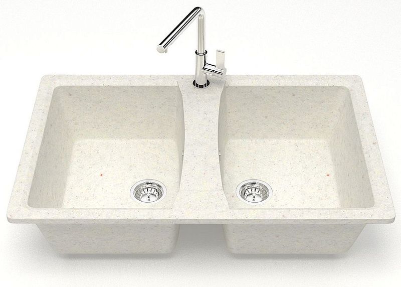 —Кухонная мойка AZARIO Элмас 780х500х190 двойная, искусственный мрамор, цвет хлопок (CS00079898)
