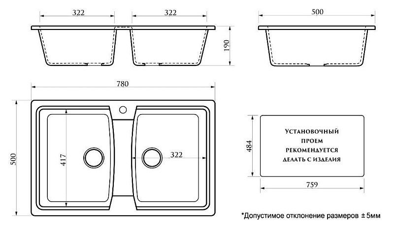 Кухонная мойка двойная AZARIO Elmas 780х500х190 , CS00079898