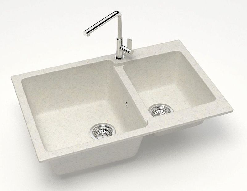 —Кухонная мойка AZARIO Гранд 765х500х190 двойная, искусственный мрамор, цвет Хлопок (CS00079904)