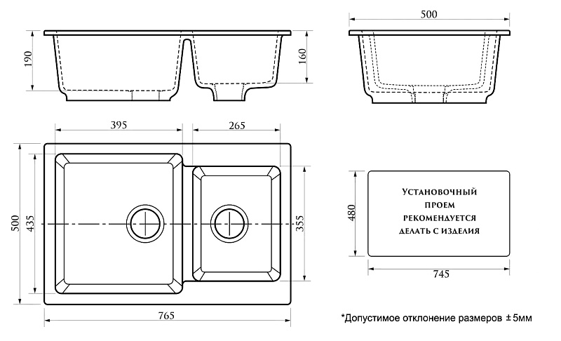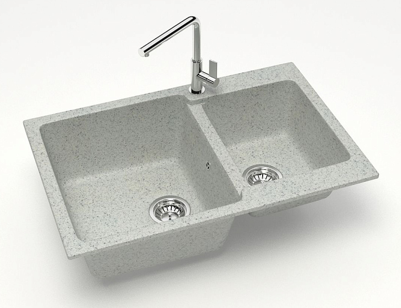 —Кухонная мойка AZARIO Grand 765х500х190 двойная, искусственный мрамор, цвет Светло серый (CS00079906)