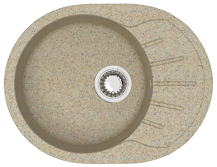 Кухонная мойка изготовлена из современных экологически чистых материалов, природного молотого кварца, мрамора или гранита с добавлением специальных пигментов и красителей.
