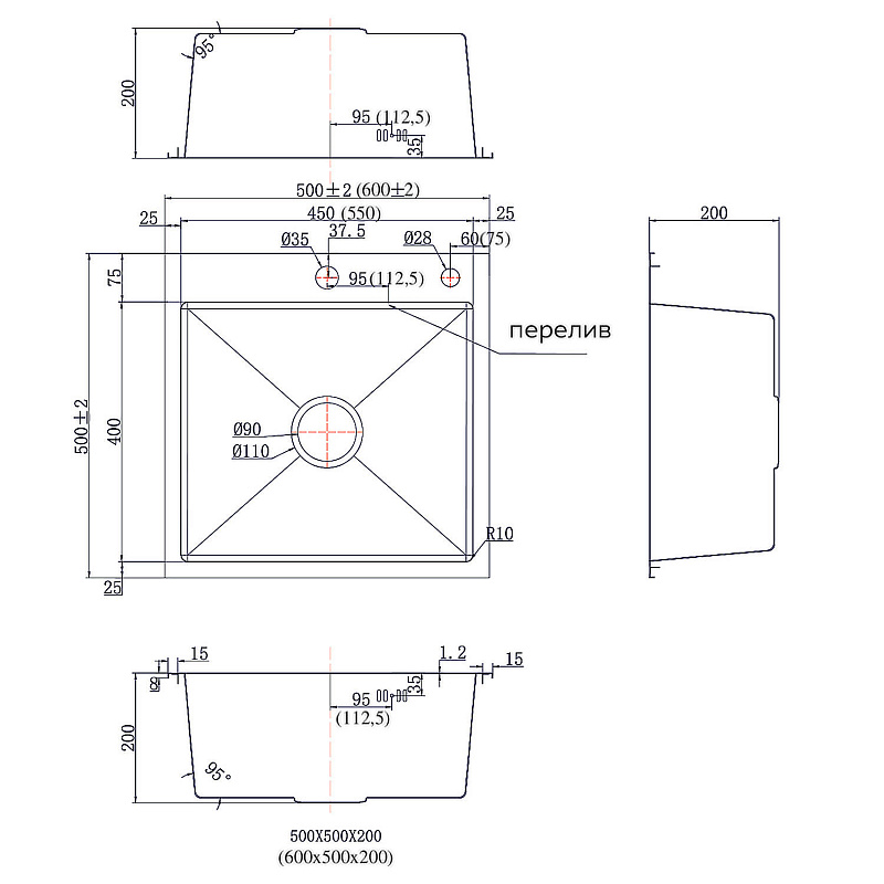 Диаметр слива, мм