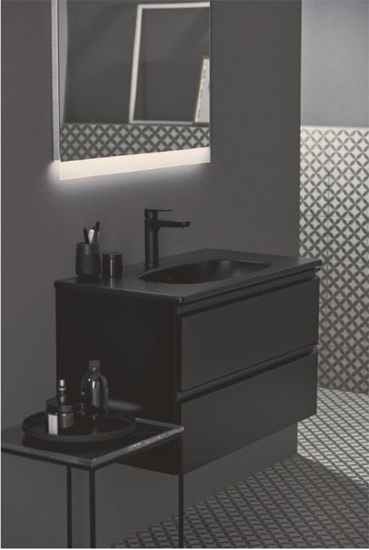 TESI Тумба для раковины 80 см для подвесного монтажа, с 2-мя ящиками с интегрированными ручками, система плавного закрытия, с крепежом Silk Black (Черный матовый), Италия.