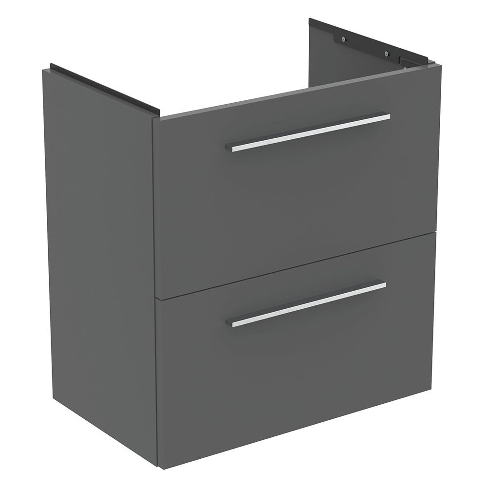 i.Life S Тумба для раковины 60 см, для подвесного монтажа, с 2-мя ящиками, система плавного закрытия, ручки в комплект не включены (заказываются дополнительно), с крепежом. Для монтажа с раковиной i.Life S Vanity 61 см T459001. Рекомендуется сифон Space Saving EE23033967 (заказывается дополнительно), поверхность/цвет Quartz Grey Matt (Кварцево-серый матовый).