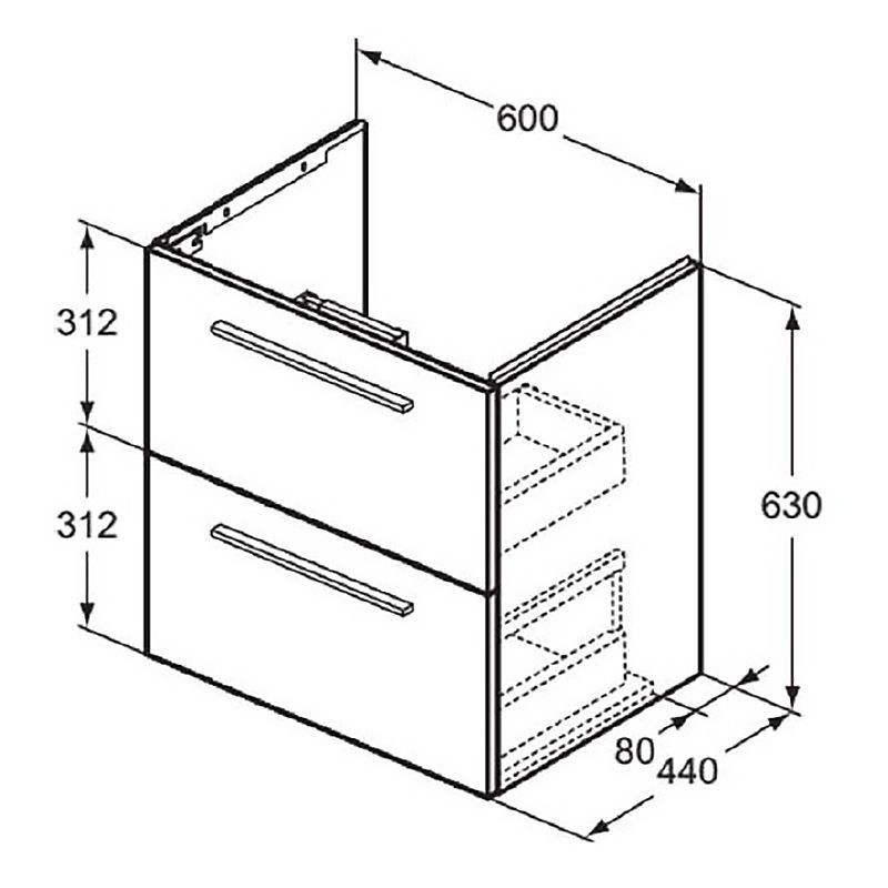 i.Life A Тумба для раковины 60 см для подвесного монтажа, с 2-мя ящиками, система плавного закрытия, ручки в комплект не включены (заказываются дополнительно), с крепежом. Для монтажа с раковиной i.Life A Vanity 64 см T461901. Рекомендуется сифон Space Saving EE23033967 (заказывается дополнительно)