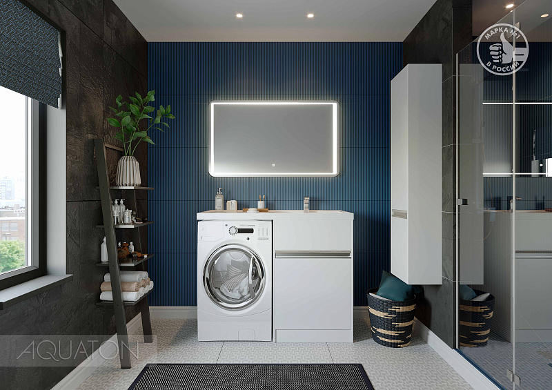 Широкое крыло раковины обеспечивает ванную комнату дополнительным функциональным пространством. Дополнительно к тумбе можно приобрести шкаф-колонну Лондри и зеркало c LED-подсветкой Соул 100.