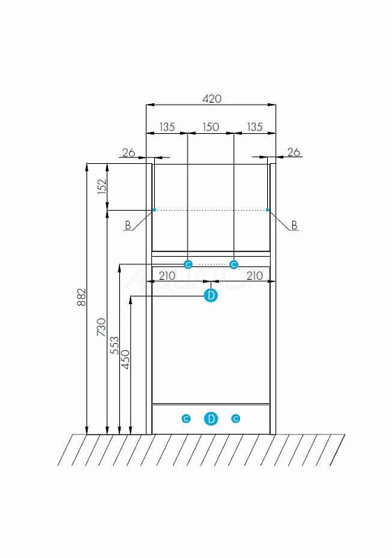 Ящики выдерживают нагрузку до 25 кг. Тумба установлена на регулируемые опоры, которые находятся за цоколем.