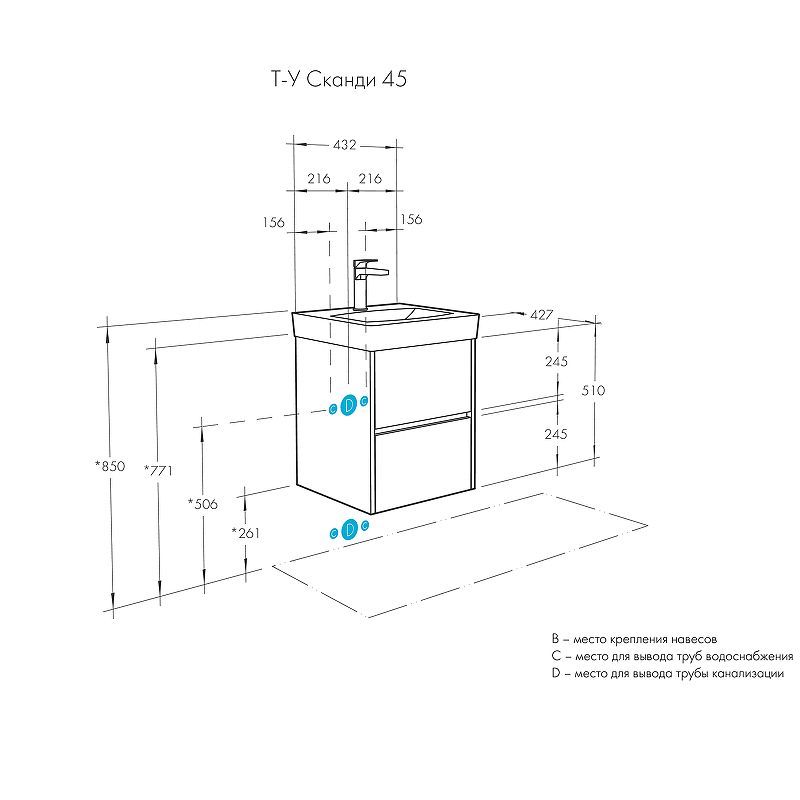 —Тумба под раковину Aquaton Сканди 45 432x510x427 подвесная, белая (1A251601SD010)