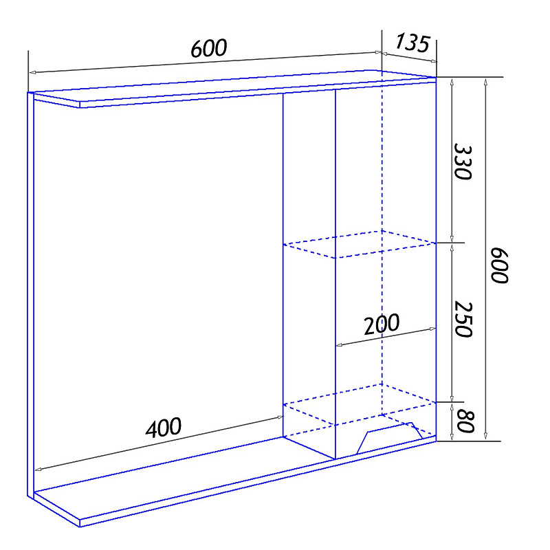 —Зеркало-шкаф Loranto Florena 60 600х135х600 правый, светлый бетон (CS00086984)