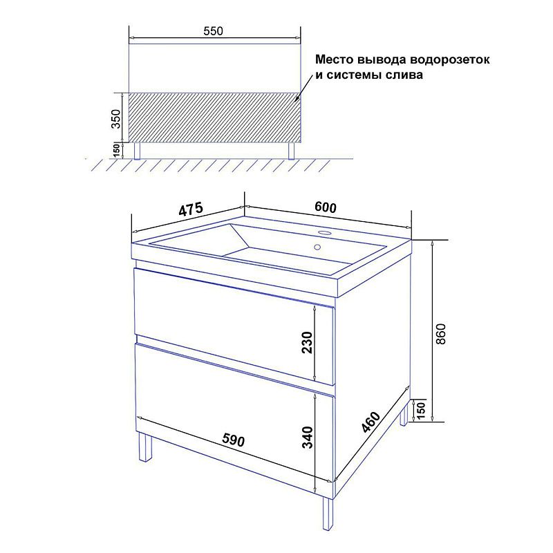 —Комплект Тумба Azario Мила 60Н 600х475х860 напольная, с раковиной Tempo 60, белый матовый (CS00091364)