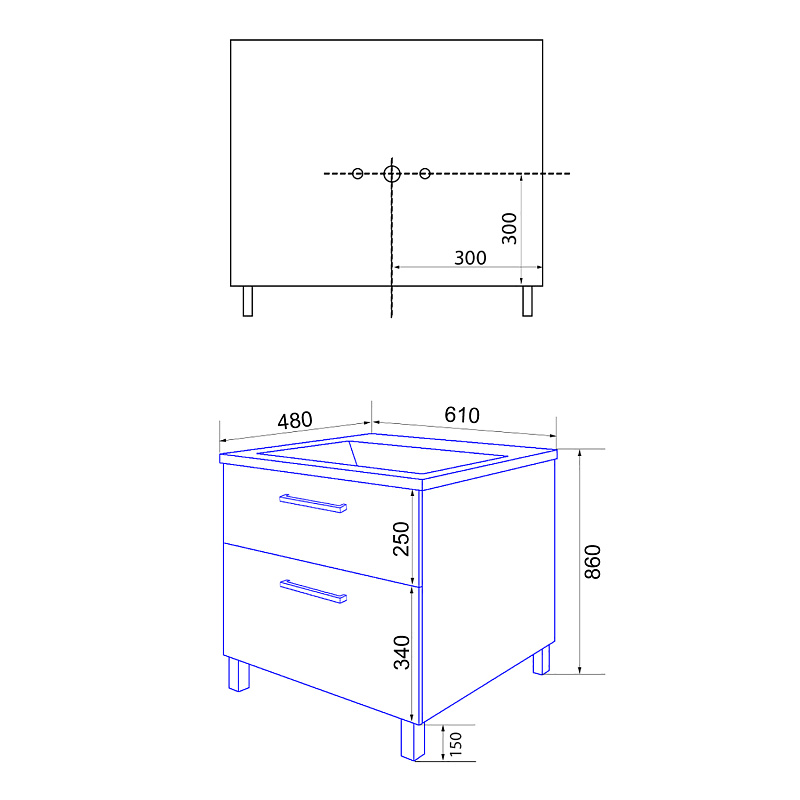Тумба в собранном виде, напольная с 2 выдвижными ящиками.