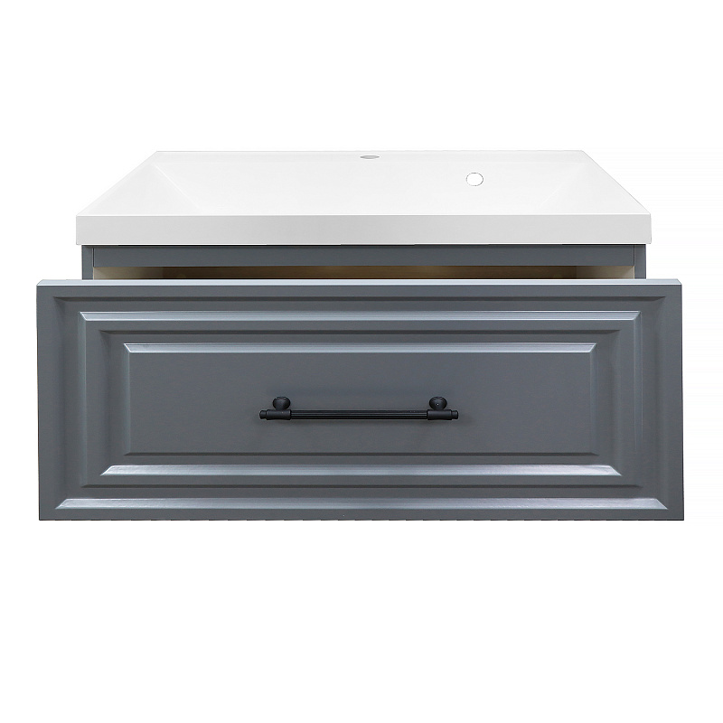 —Комплект Тумба Azario LAURA 80/1 800х450х455 подвесная, с раковиной CLASSIK 80, серый матовый, фурнитура черная (CS00096987)