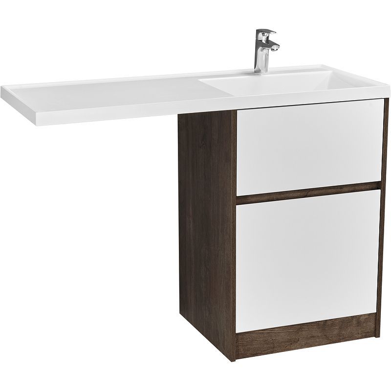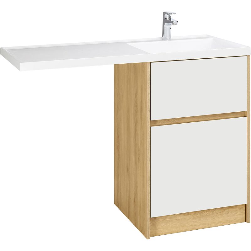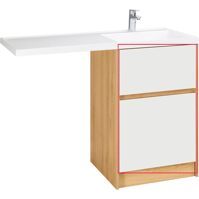 Фасад для тумбы Лондри под стиральную машину выполнен из влагостойкой ламинированной плиты в белом цвете. Корпус тумбы и фасад приобретаются отдельно. Верхний ящик открывается с помощью системы push-to-open, а нижний - за фасад с помощью удобного выпила под углом. Ящики выдерживают нагрузку до 25 кг. Тумба установлена на регулируемые опоры, которые находятся за цоколем. Тумба комплектуется раковиной Лондри 120 из прочного литого мрамора, который устойчив к воздействию химических средств. Широкое крыло раковины обеспечивает ванную комнату дополнительным функциональным пространством. Дополнительно к тумбе можно приобрести шкаф-колонну Лондри и зеркальный шкаф Лондри 120.