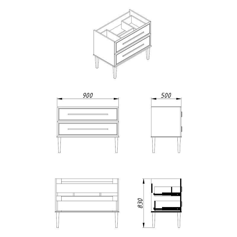 • Габариты 900х500х880 мм делают эту тумбу оптимальным выбором для ванных комнат различного размера, предлагая достаточно места для хранения и комфортного использования.