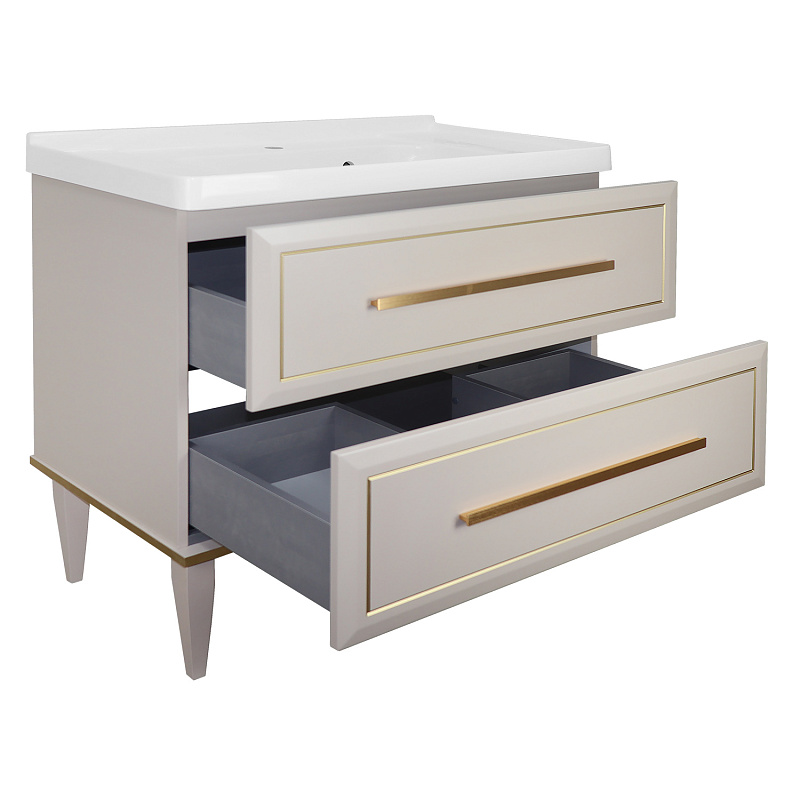 • Нежный и благородный оттенок "Кашемир" придает тумбе изысканность и утонченность, легко вписываясь в любой интерьер ванной комнаты, от классического до современного.