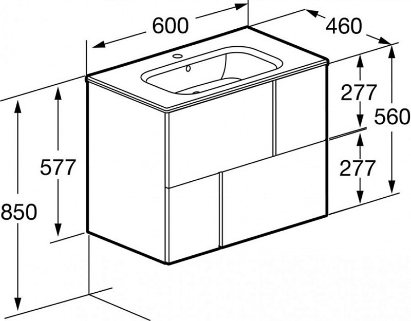 —Комплект: Тумба под раковину Roca Pilar 60 подвесная, 2 ящика + раковина VICTORIA-N 600х460, синий (Z.RU93.1.044.7)