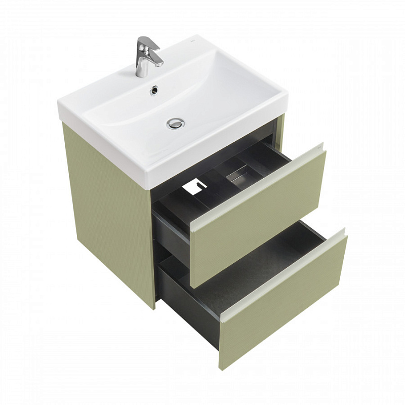 —Комплект: Тумба под раковину Roca Ona Olive 600 подвесная, 2 ящика + раковина ONA 60х46, оливковый матовый (Z.RU93.1.045.5)