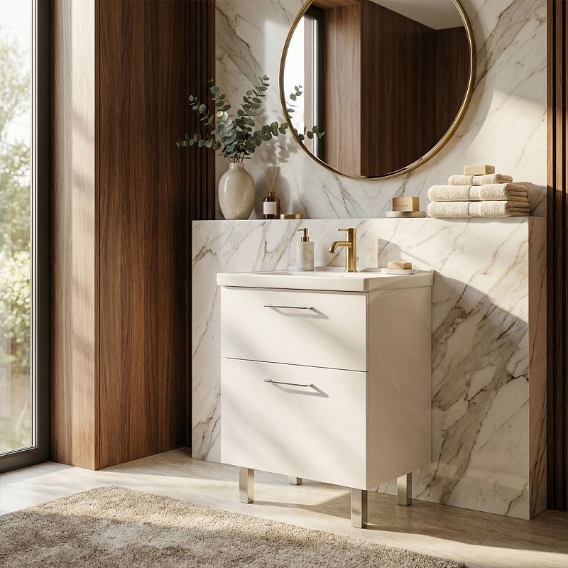 Легкость в уходе: Гладкие поверхности фасадов и раковины легко моются, сохраняя первоначальный вид на долгие годы.