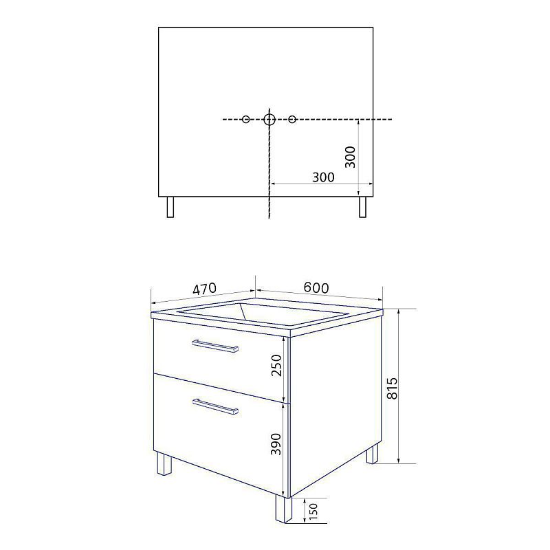 Размеры: Компактные габариты тумбы (600х470х815 мм) позволяют ей идеально вписаться даже в небольшие ванные комнаты, при этом обеспечивая достаточно места для хранения.