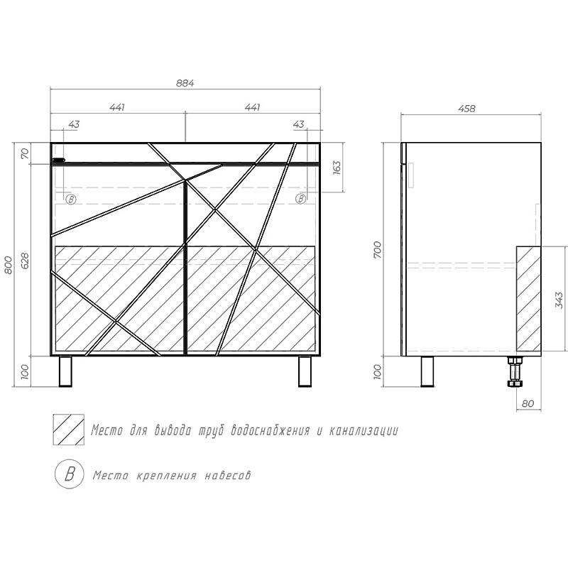Модели одного комплекта (набора) мебели Оптимум выполнены в едином архитектурно-художественном и конструктивно-технологическом решении. Фасады имеют геометрическую фрезеровку с встроенной ручкой. Классический конструктив тумб под раковину с двумя дверцами и полкой позволяет удобно разместить бытовую химию, косметические средства и все необходимое.