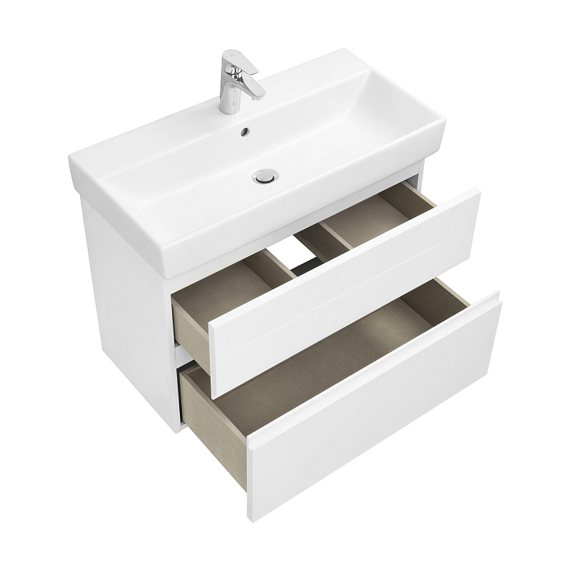 —Комплект Roca OLETA модуль для раковины 800 мм, 760х374х548, с 2 ящиками + раковина мебельная PURE 800х390, белый матовый (Z.RU93.0.763.6)