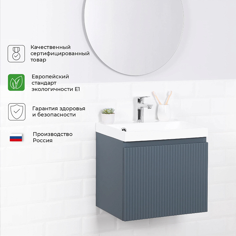 —Комплект тумба Итана Kate 50 (494х344х448) подвесная, с раковиной Clarissa 50, антрацит (CS00090877)
