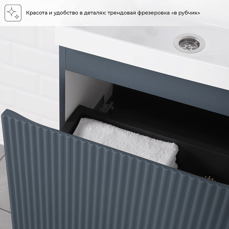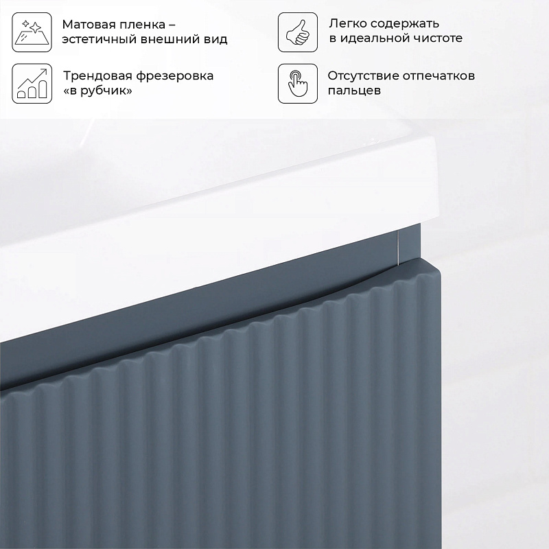 Коллекция Kate - воплотила в себе тренд на фактурные фасады. Идеальный "рубчик" - простое и стильное дизайнерское решение для декорирования фасадов - эта мебель бесспорно станет украшением современной ванной комнаты. Коллекция выполнена из МДФ и покрыта ПВХ пленкой, что делает её устойчивой к влаге, а значит долговечной. Удобные фрезерованные ручки, качественная фурнитура с доводчиками, вместительность - мы продумали все, чтобы мебель была не просто красивой, но еще и функциональной, приятной в использовании.
