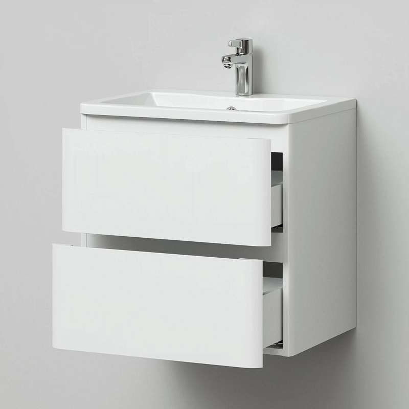 —Комплект тумба Итана Roberto 60 (597х454х606) подвесная, с раковиной Adel 60/Adelina 60, белый глянец (CS00090043)