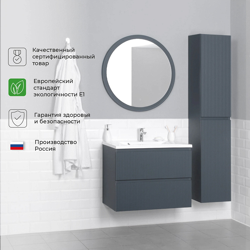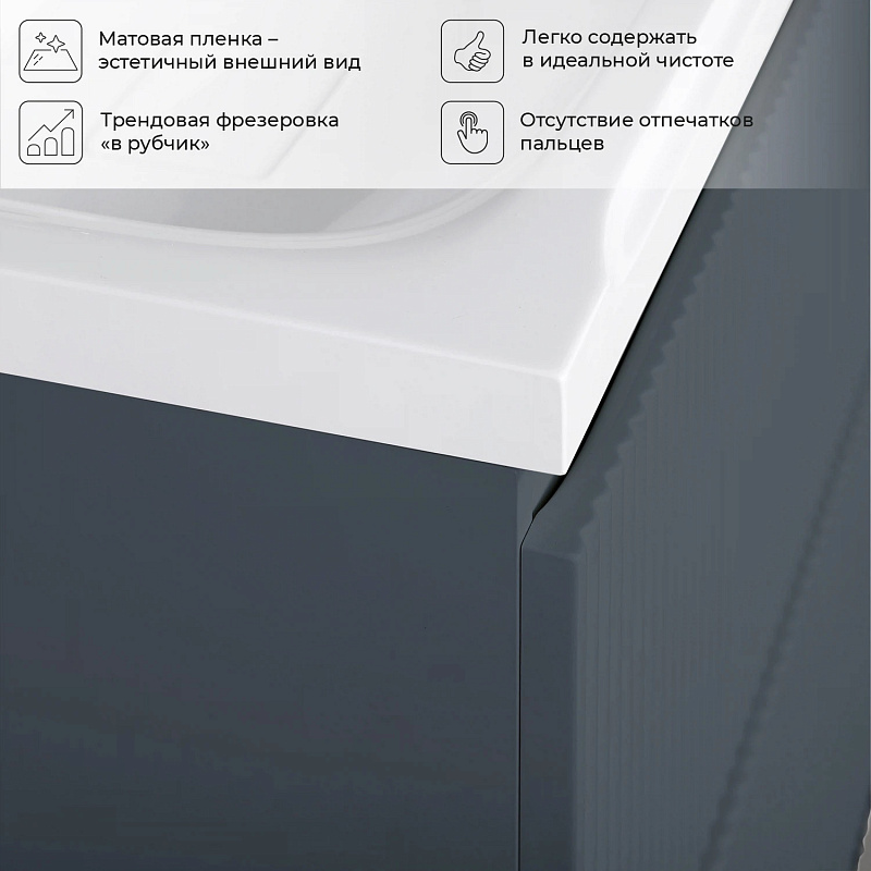 Коллекция Kate - воплотила в себе тренд на фактурные фасады. Идеальный "рубчик" - простое и стильное дизайнерское решение для декорирования фасадов - эта мебель бесспорно станет украшением современной ванной комнаты. Коллекция выполнена из МДФ и покрыта ПВХ пленкой, что делает её устойчивой к влаге, а значит долговечной. Удобные фрезерованные ручки, качественная фурнитура с доводчиками, вместительность - мы продумали все, чтобы мебель была не просто красивой, но еще и функциональной, приятной в использовании.