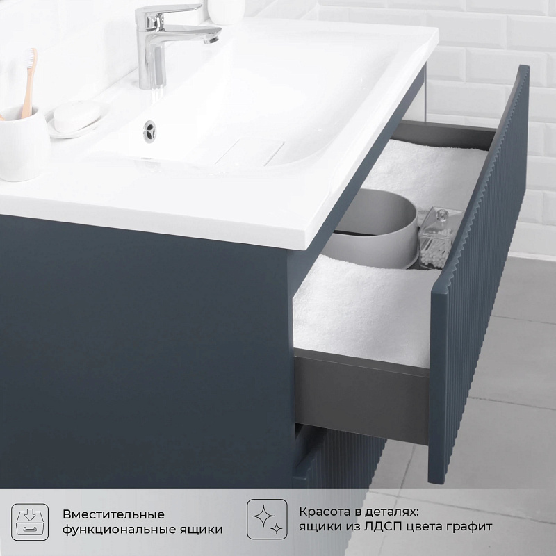 —Комплект тумба Итана Kate 80 (987х438х640) подвесная, с раковиной Milena 80, антрацит (CS00090007)