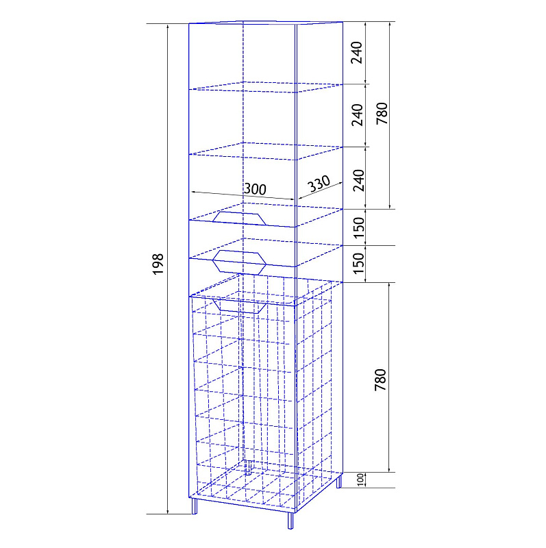 Пенал Loranto Стиль 30 с корзиной для белья, правосторонний, 300х1970х330, белый (CS00024792)