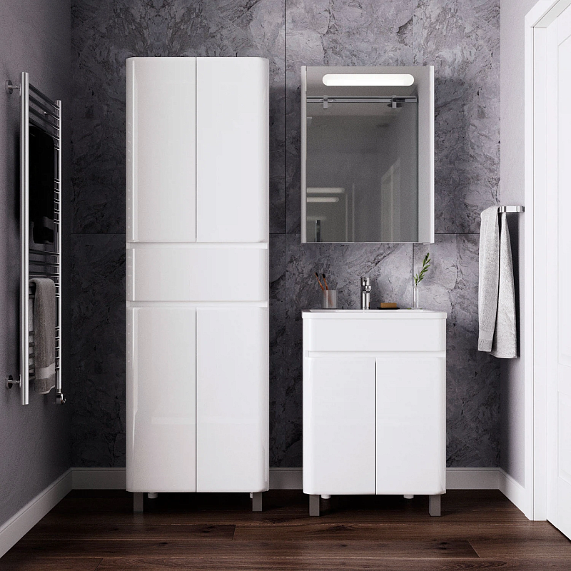 Идеальный белый глянец в сочетании с современным лаконичным дизайном-это коллекция Roberto.Эстетика изящества и минимализма-скругленные фасады,отсутствие лицевой фурнитуры.Напольный пенал выполнен из влагозащищенного МДФ, покрыт белоснежной глянцевой эмалью.Качественные петли с доводчиками и направляющие скрытого монтажа обеспечат плавное выдвижение ящичка,бесшумное закрывание дверок.Вместительные полки позволят разместить бытовую химию,а так же средства личной гигиены.Мебель способна вместить в себя достаточно много вещей.Изысканность,простота и гармоничность-все сошлось в этой прекрасной коллекции!