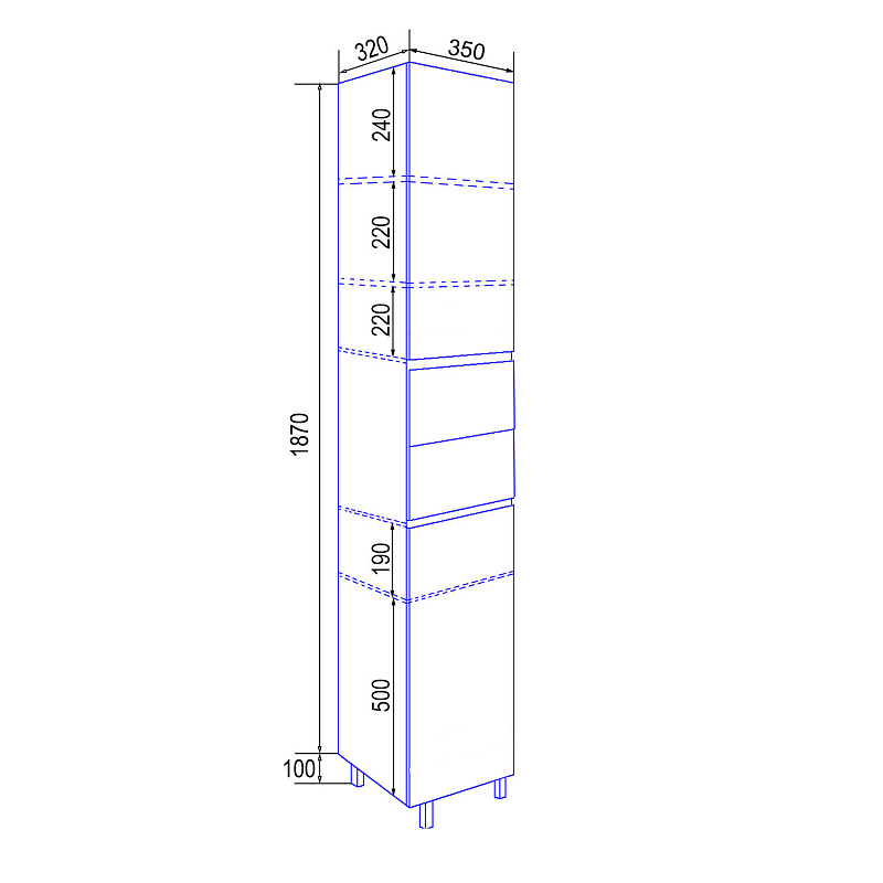 —Пенал Azario Эстима 35 350х320х1970 напольный, левый, белый глянец (CS00094554)