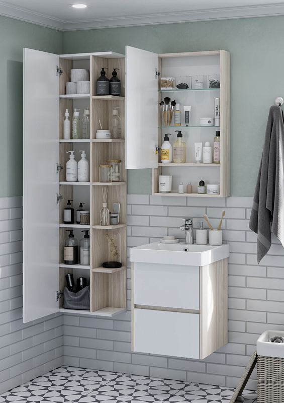 —Пенал подвесной AQUATON Сканди с зеркалом, дуб верона (1A253403SDB20)