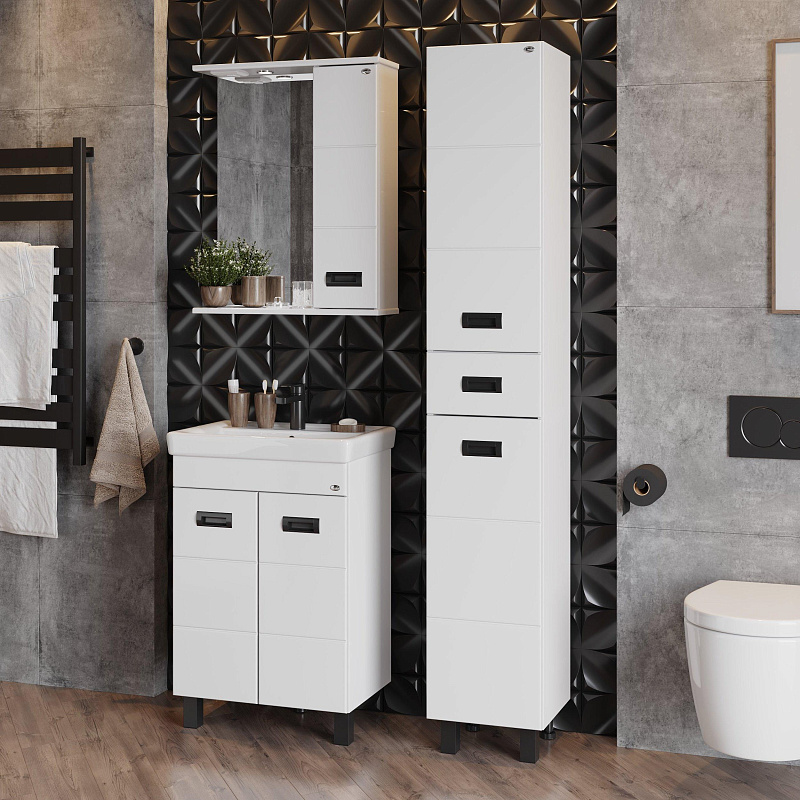 Корпус пенала выполнен из ЛДСП, фасад - из МДФ в пленке, устойчивых к механическим воздействиям, перепадам температур и высокой влажности.