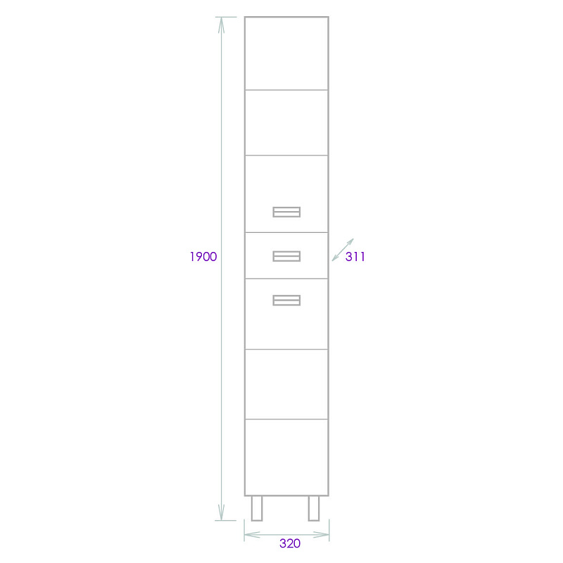 Пенал имеет универсальную ориентацию: при установке верх и низ пенала можно менять местами, а дверцы могут открываться как влево, так и вправо.
