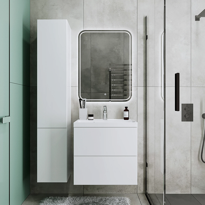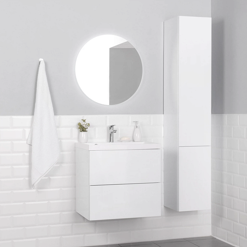 Белоснежная глянцевая мебель из коллекции Icon добавит ощущения чистоты и безупречности в современный интерьер ванной комнаты. Изделия выполнены из влагозащищенного МДФ, корпус и фасады покрыты высокоглянцевой ПВХ-пленкой. Система push-to-open позволяет открывать выдвижные ящики и распашную дверцу простым нажатием на фасад. Главное преимущество системы: отсутствие ручек на фасадах. Подвесной способ установки обеспечивает легкую уборку в ванной комнате. Идеальные прямые линии, вкладные фасады, тонкая рамка корпуса, лаконичность-которая восхищает. Такая мебель удовлетворит потребности покупателей в функциональности, но не будет забирать все внимание на себя.