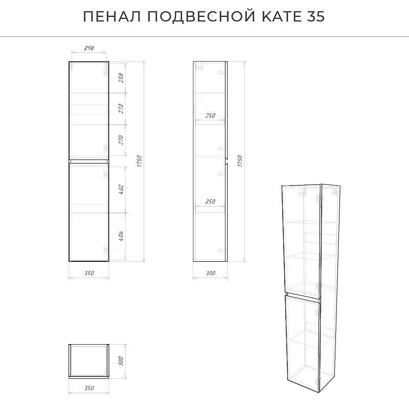 —Пенал подвесной Итана Kate 35 350х300х1750 синий (CS00085532)