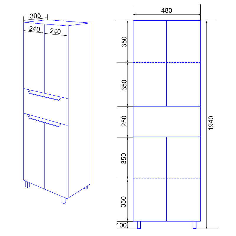 Пенал Loranto Палермо 480х305х1940 напольный, белый (CS00090467)