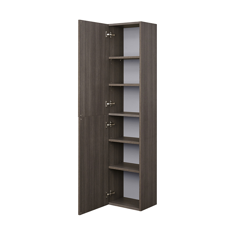 Шкаф-колонна THE GAP в древесном декоре обладает универсальным современным дизайном и функциональностью. Корпус и фасад-створка выполнены из влагостойкой ЛДСП в темном древесном текстурированном декоре. Открывание створок в одно касание, за фасадами-створками скрываются регулируемые полочки из влагостойкой ЛДСП.