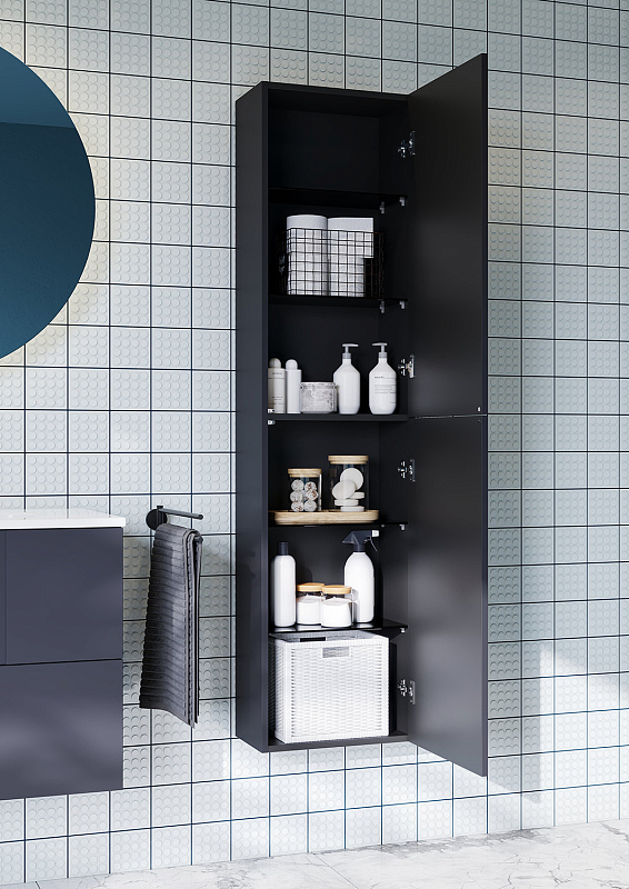 Шкаф-колонна Luna - стильное и функциональное решение для ванной комнаты. Высококачественная МДФ в матовой плёнке обеспечивает защиту от влаги и безупречный внешний вид на долгие годы. Благодаря системе push-to-open открытие створок происходит лёгким нажатием, что делает использование шкафа-колонны максимально удобным. За фасадами-створками скрываются регулируемые стеклянные полочки. Шкаф-колонна реверсивна: для правого или левого навешивания достаточно просто перевесить фасады. Отсутствие лицевой фурнитуры и уникальная фрезеровка на фасадах придают колонне современный вид, соответствующий тенденциям футуризма.