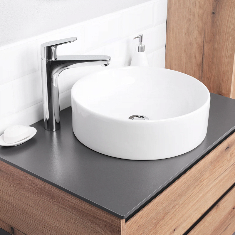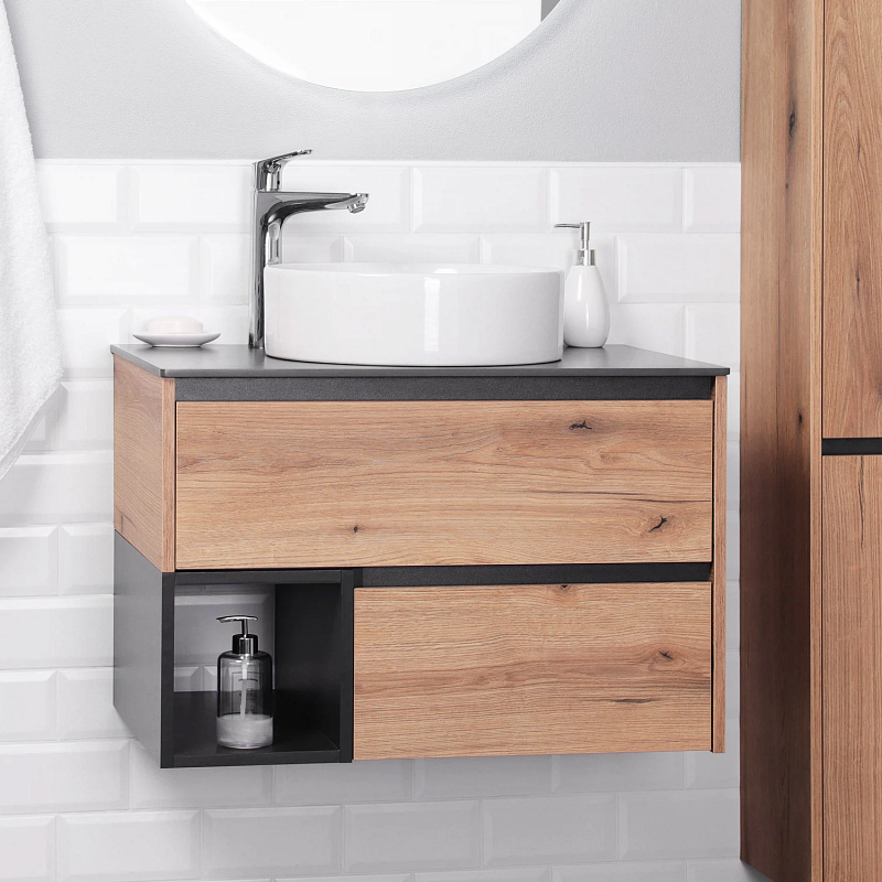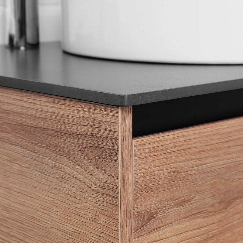 Столешница из керамогранита, толщиной 10 мм. Устоичива к царапинам. Керамогранит - это чрезвычайно твердая поверхность, не подверженная травлению, окрашиванию и другим повреждениям, которые повседневная жизнь может нанести, к примеру, натуральному мрамору, но его можно производить с сопоставимой красотой благодаря технологиям производства. Отлично подойдет к тумбе из коллекции Amelia.