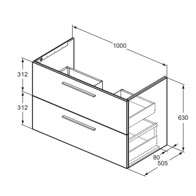 i.Life B Тумба для раковины 100см для подвесного монтажа, с 2-мя ящиками, система плавного закрытия (ручки заказываются дополнительно)
